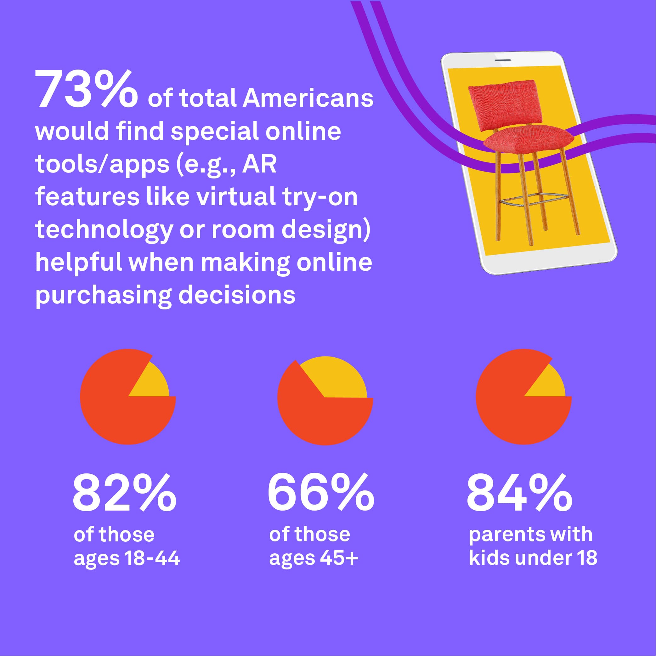 Parents with children under the age of 18 are more likely to find augmented reality tech features helpful when making online purchasing decisions — 84% vs. 69%. Parents of minors are often digital natives, which may make them more apt to try new and exciting tech options while online shopping.