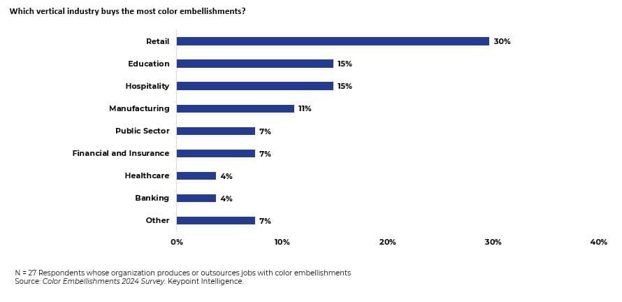 Looking ahead, market growth appears healthy. The survey data reveals that some PSPs are planning to increase their investment in embellishment-capable presses within the next year, which aligns with most respondents expecting a rise in sales of embellishments over the next two years.